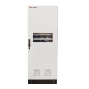 Los inversores modulares Hannibal son totalmente personalizables según las necesidades del cliente. Ofrecen salida monofásica o trifásica y tecnología de puente completo basada en IGBT en sus unidades de conversión. Además, cuentan con un convertidor CC/CA de estructura modular y módulos de potencia intercambiables en caliente, compatible con diversos tipos de baterías como Alcad , Saft N i-CD, Yuasa VRLA , Enersys OPZV y de iones de litio.